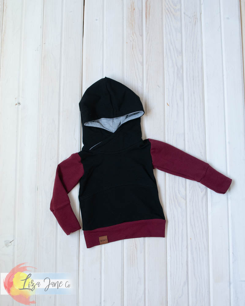 Grow with Me Hoodie | Burgandy and Black {3-12 Month}