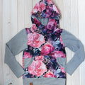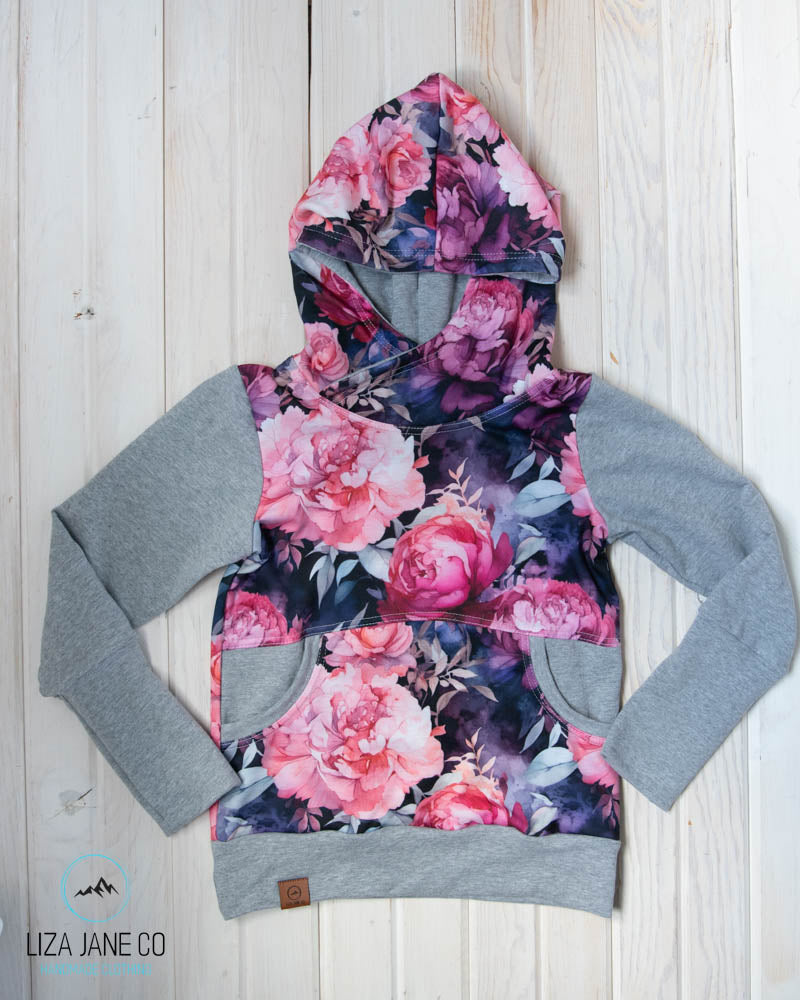 Grow with Me Hoodie | Pink & Purple peonies & Grey Sleeves