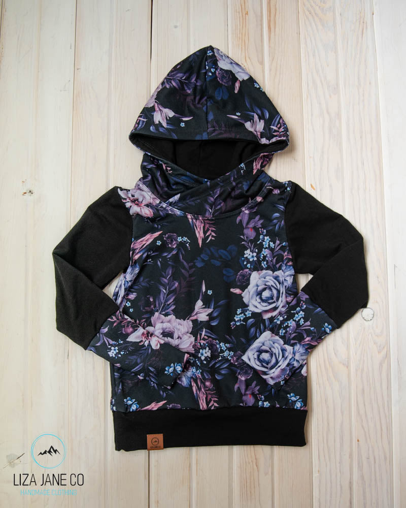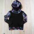 Grow with Me Hoodie | Purple Floral on Black & Black Sleeves
