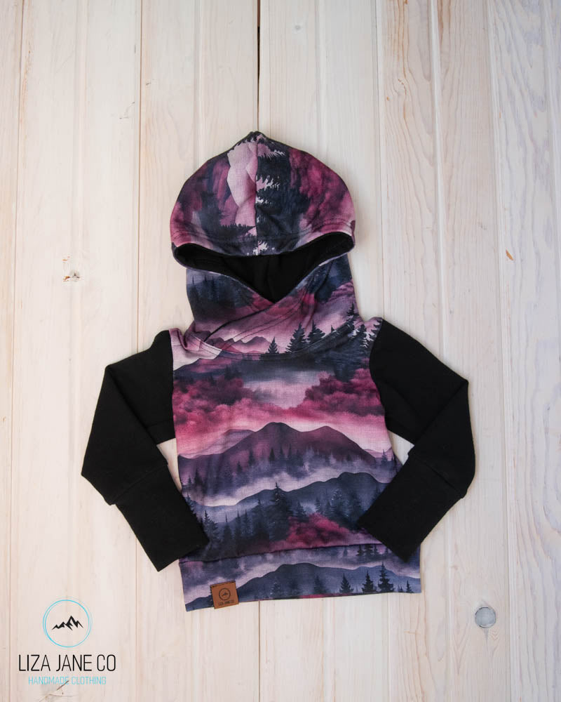 Grow with Me Hoodie | Purple Mountains & Black Sleeves