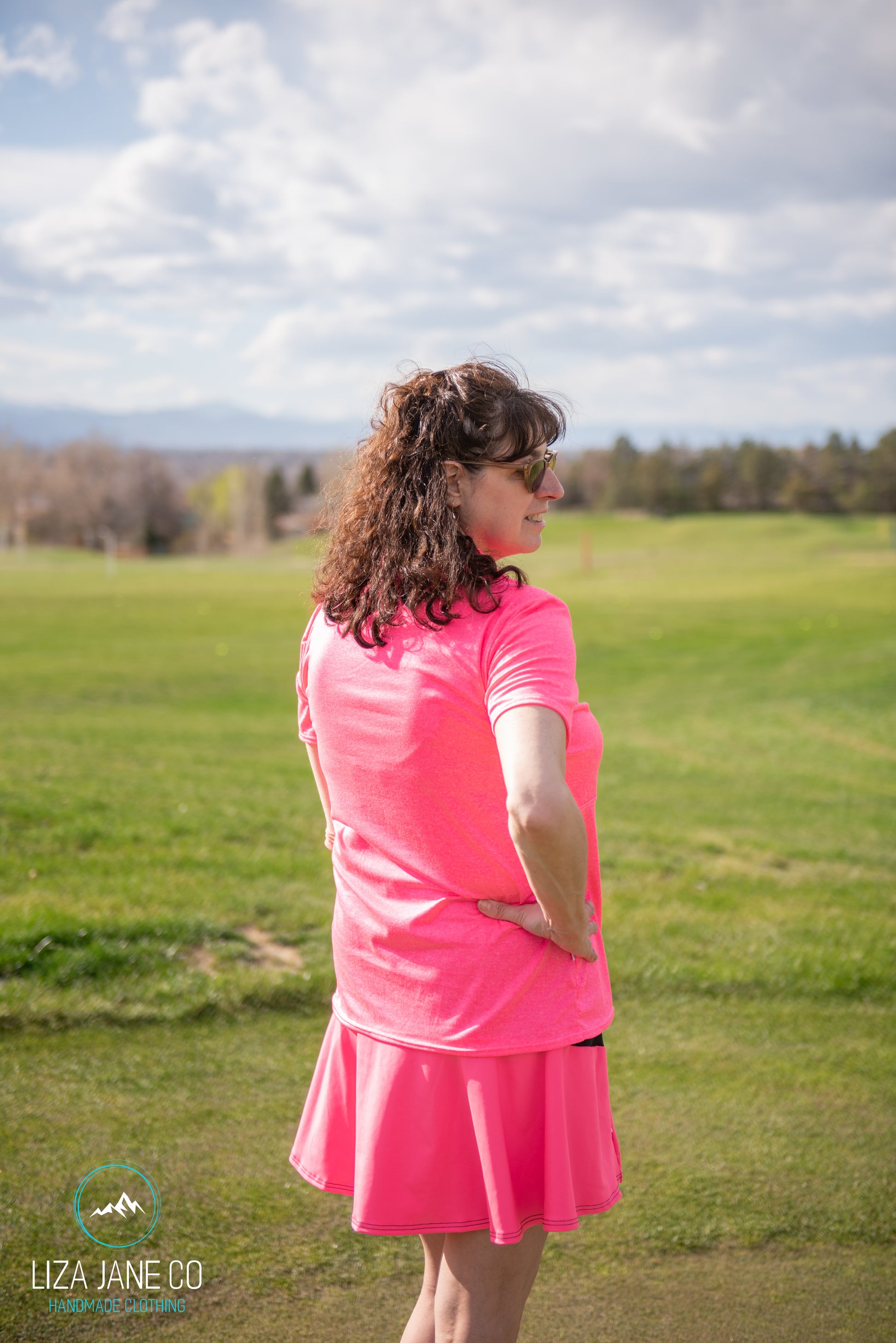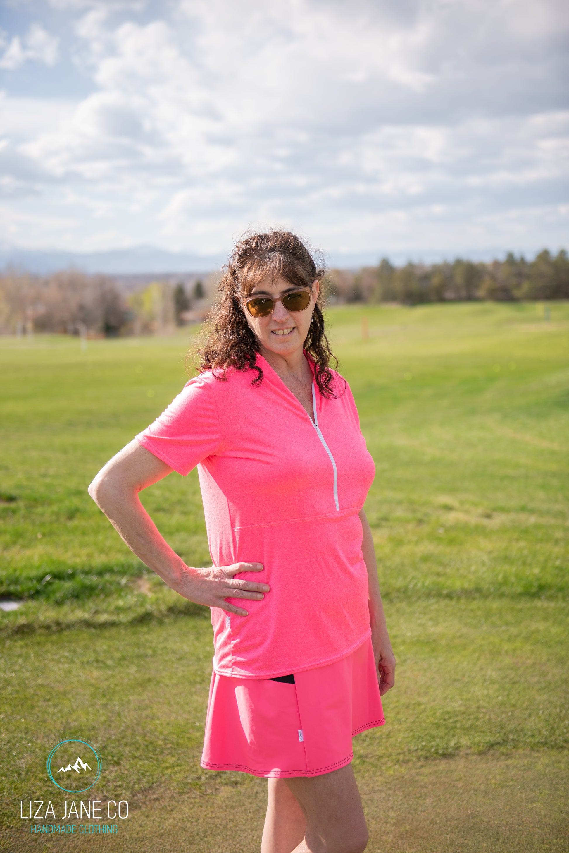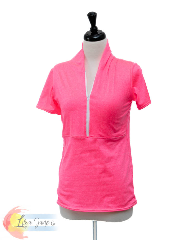 Hot Pink 3/4 zip Women's Golf Shirt - Short sleeve
