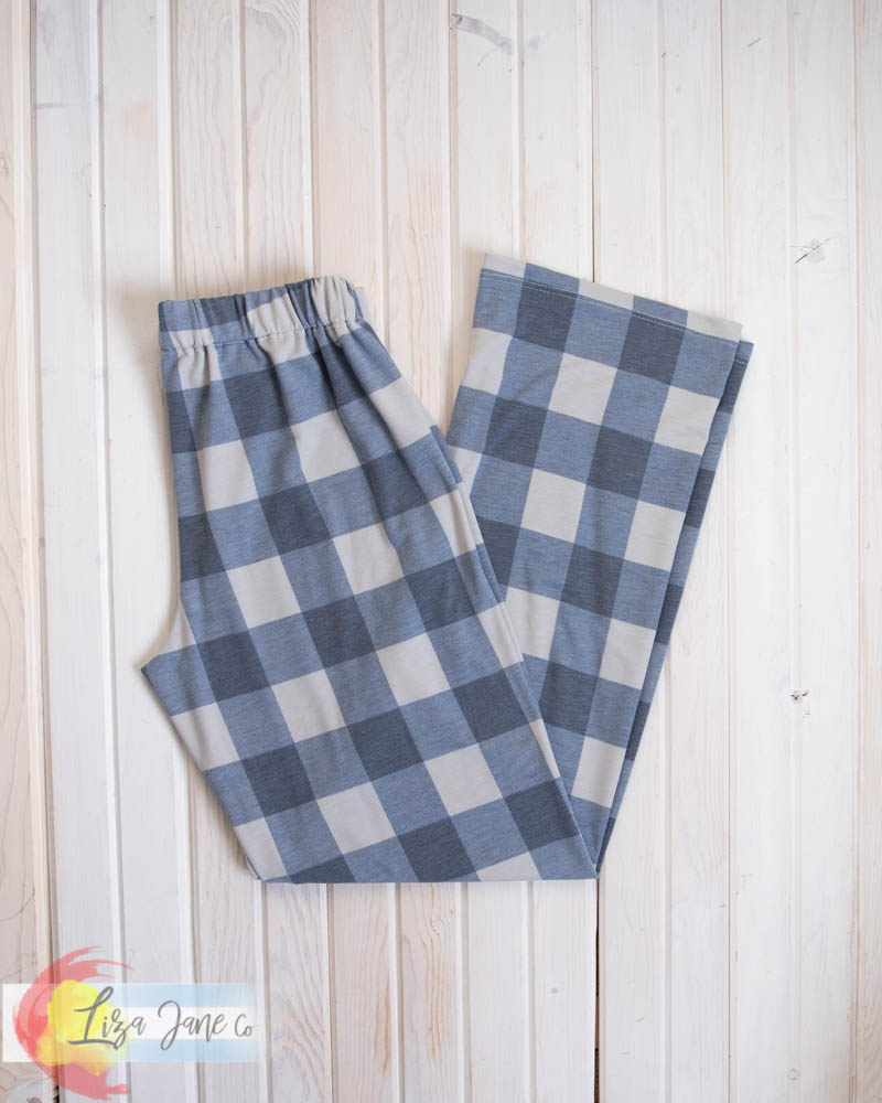 Mens Pajama Pants - Blue/Grey Plaid (Medium 34")
