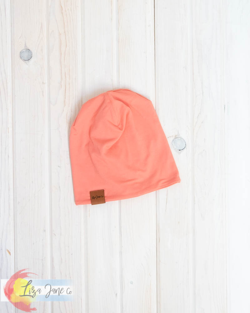 Slouchy Beanie - Solid Coral {3-9 Mo)