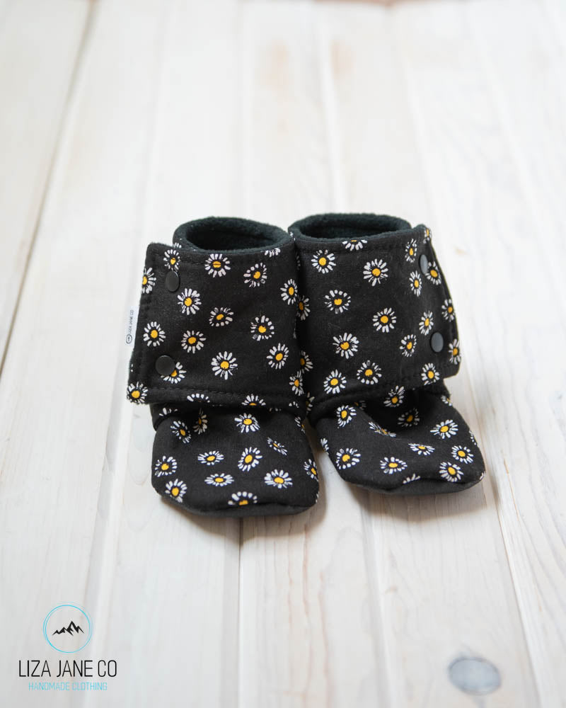 Stay-on Baby Booties | Daisies on Black