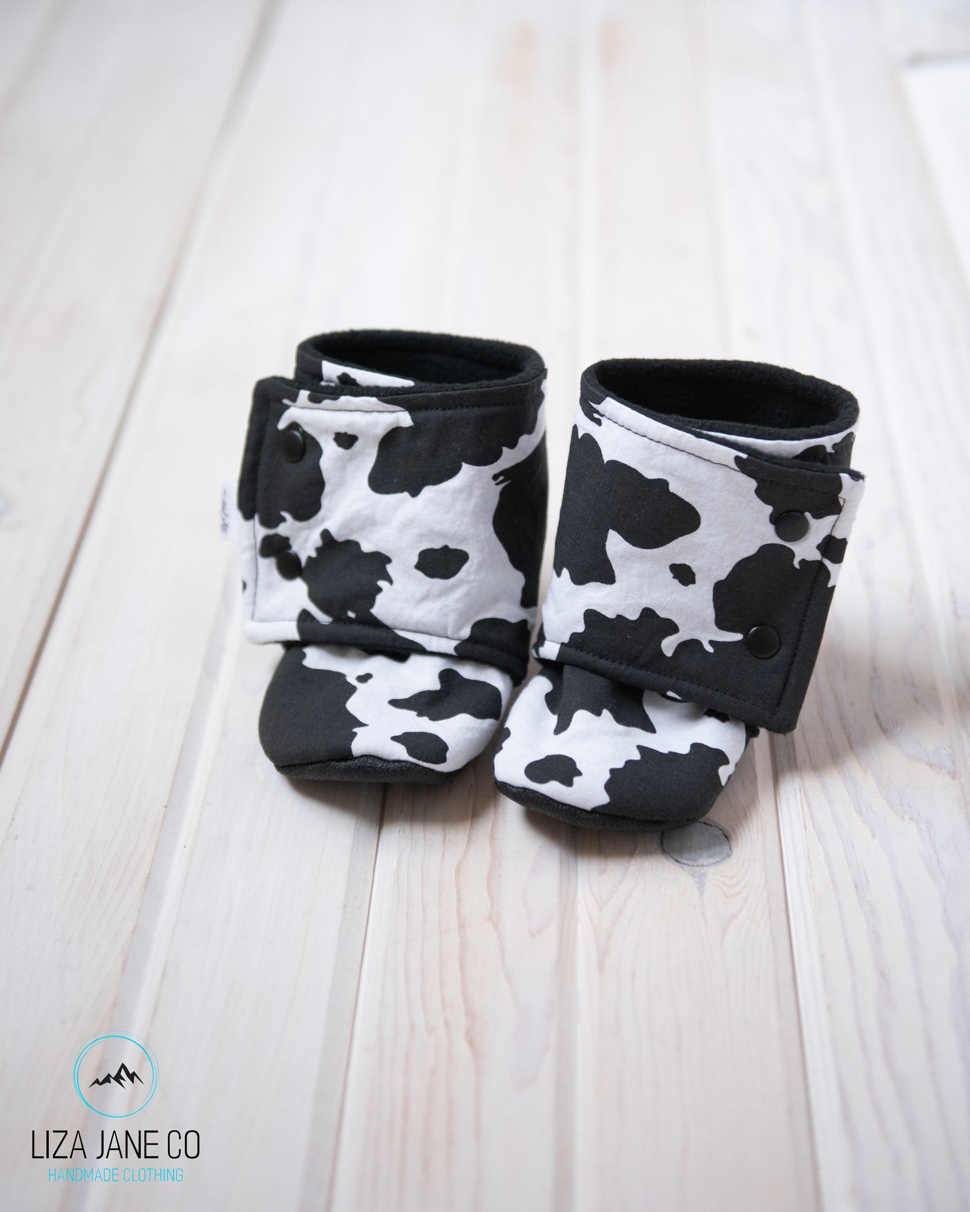 Stay-on Baby Booties | Small Cow print on White