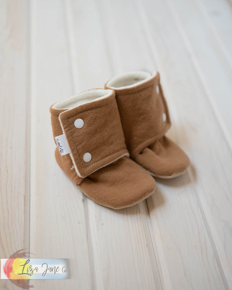 Stay-on Baby Booties | Tan and White