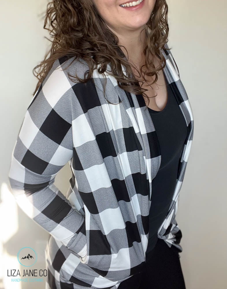 Women's Cocoon Cardigan | Black/White Buffalo Plaid