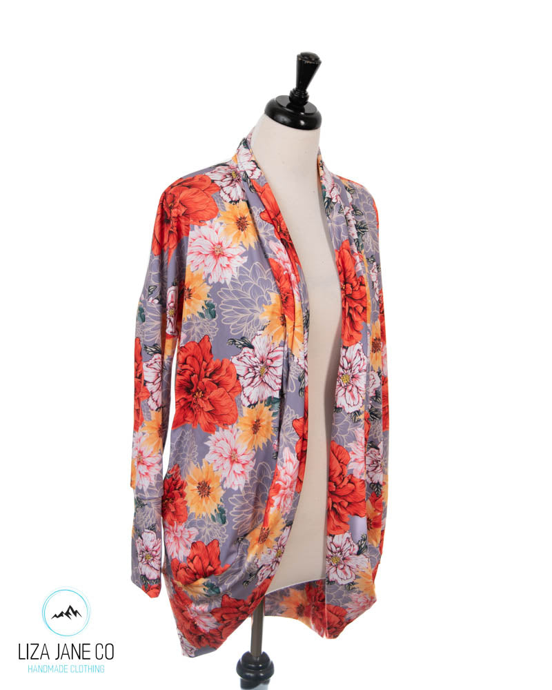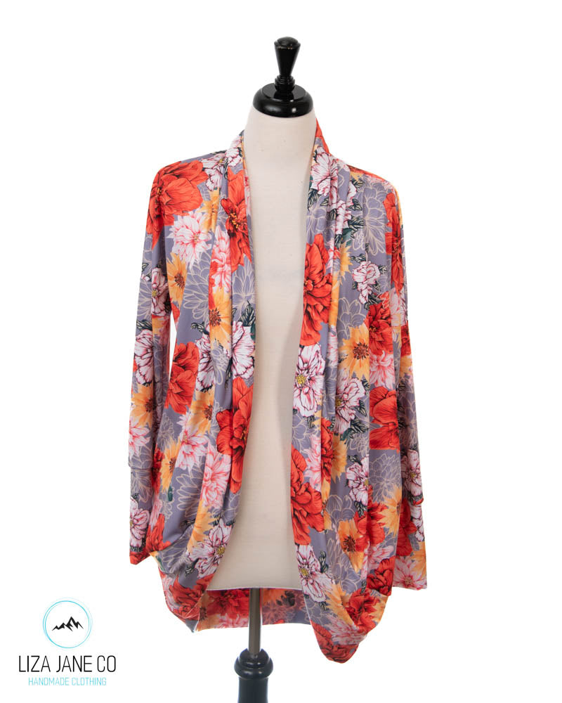 Women's Cocoon Cardigan | Poppy and Floral on Grey (Made to Order)