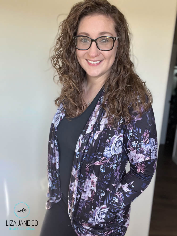 These cardigans are long sleeve and have long bands to cover the booty. And of course, they have pockets!