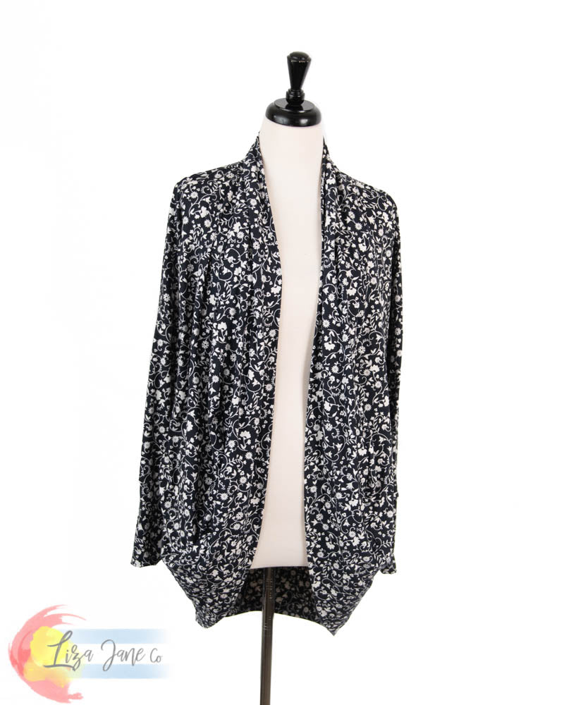 Women's Cocoon Cardigan | White Vines on Navy {X-Large}