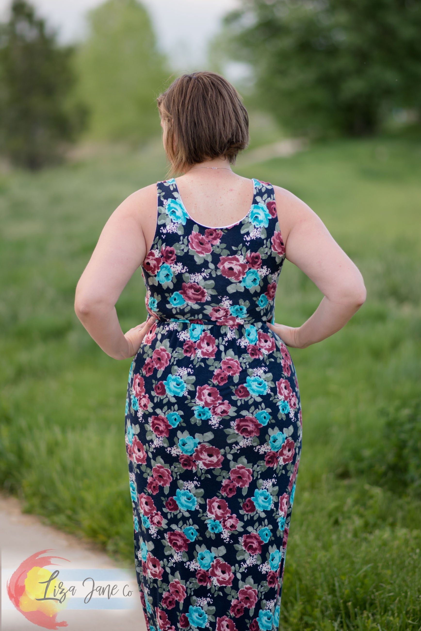 Women's Dress | Floral on Blue Maxi Tank Dress {X-Large Tall}