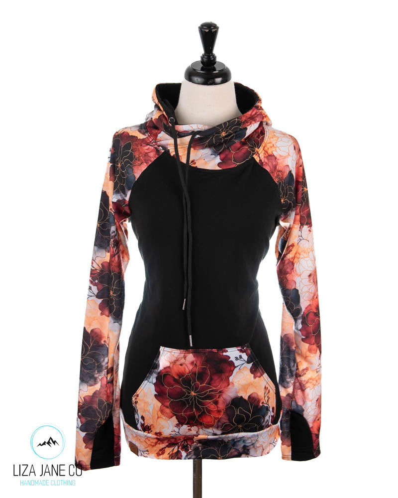 Women's Hoodie | Fall Floral Alcohol Ink and black on Body {Made to Order}