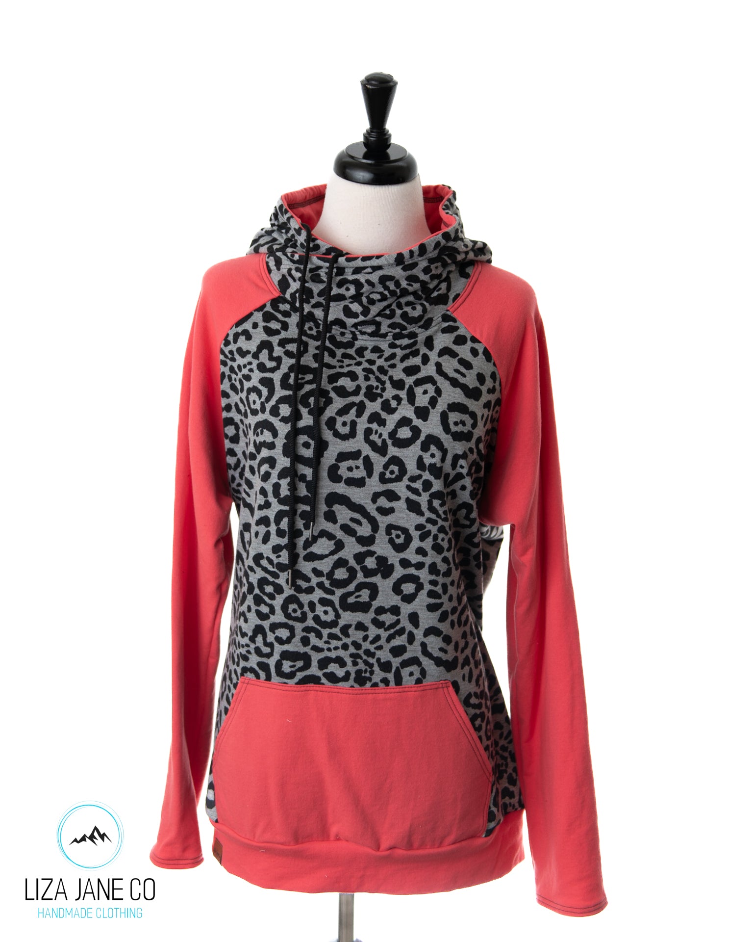 Women's Hoodie | Leopard on grey and Coral {XX-Large}