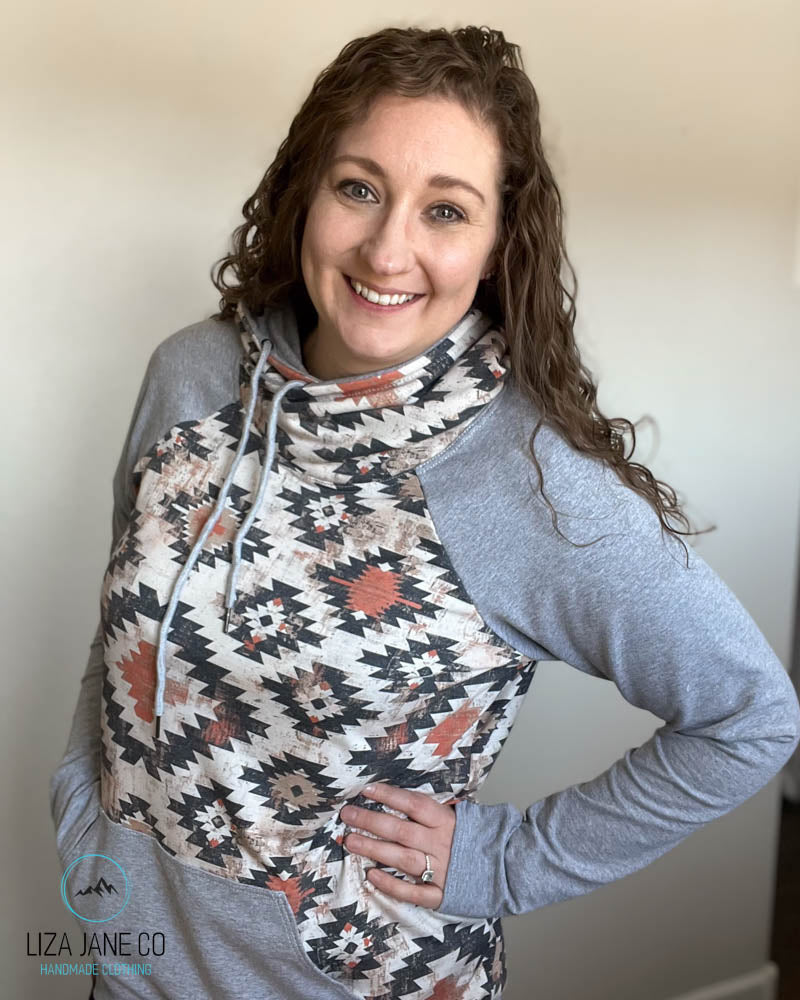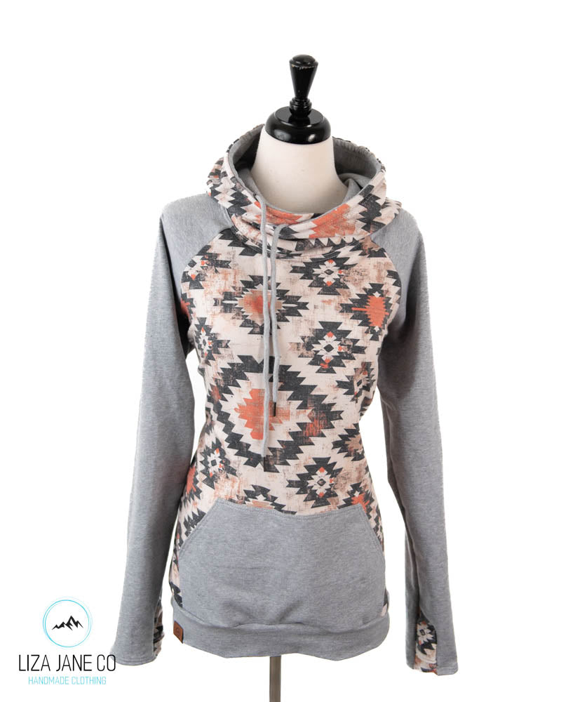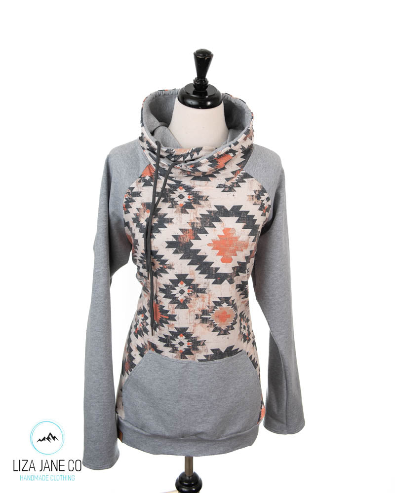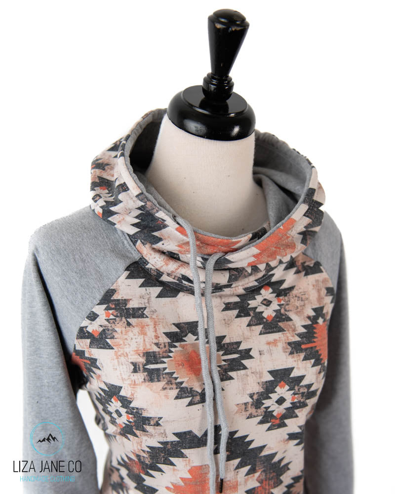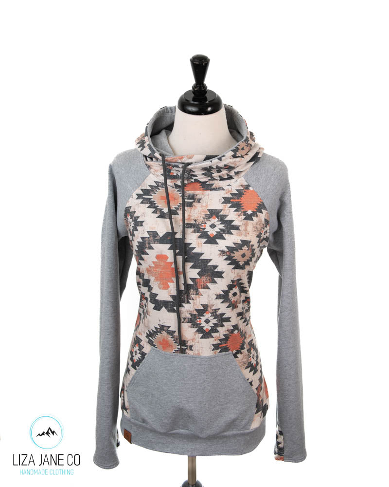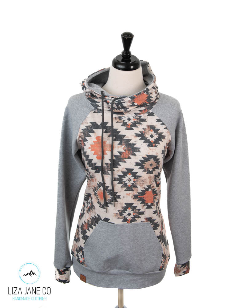 Women's Hoodie | Natural/earthy Aztec and Grey on Sleeves {Made to Order}