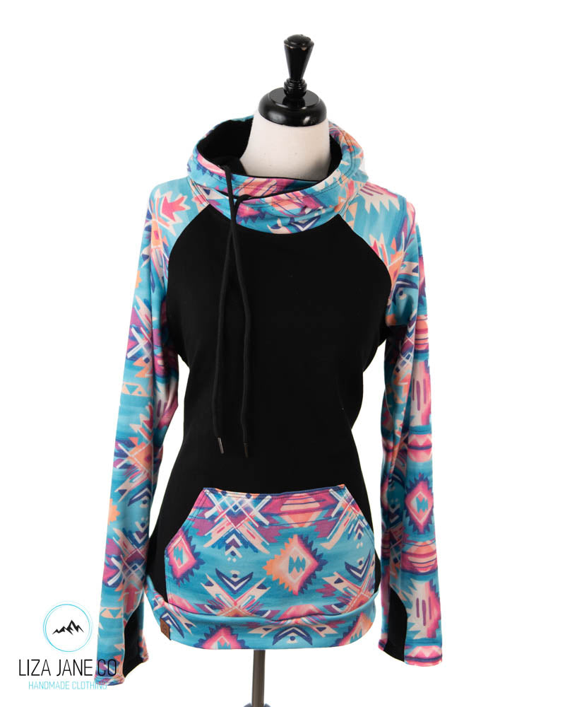 Women's Hoodie | Neon Aztec and black on Body {Made to Order}