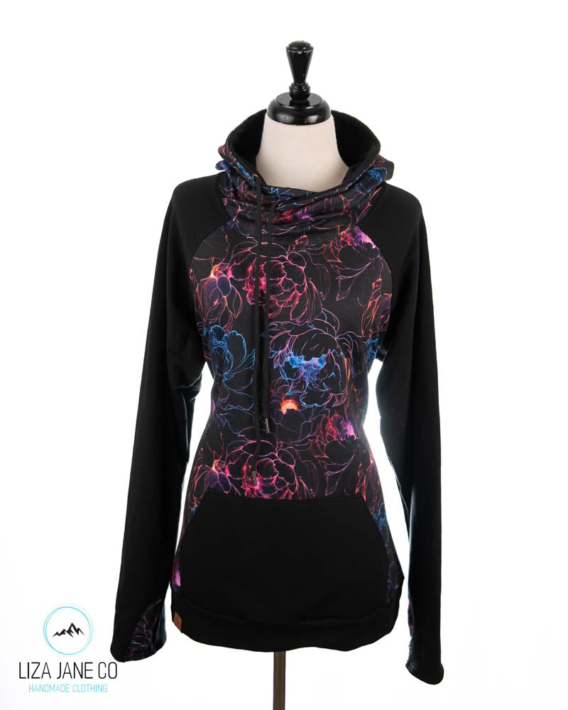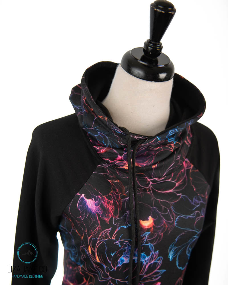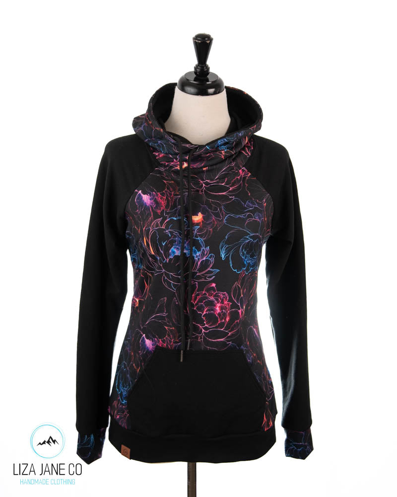 Women's Hoodie | Neon floral outline and black on Sleeves {Made to Order}