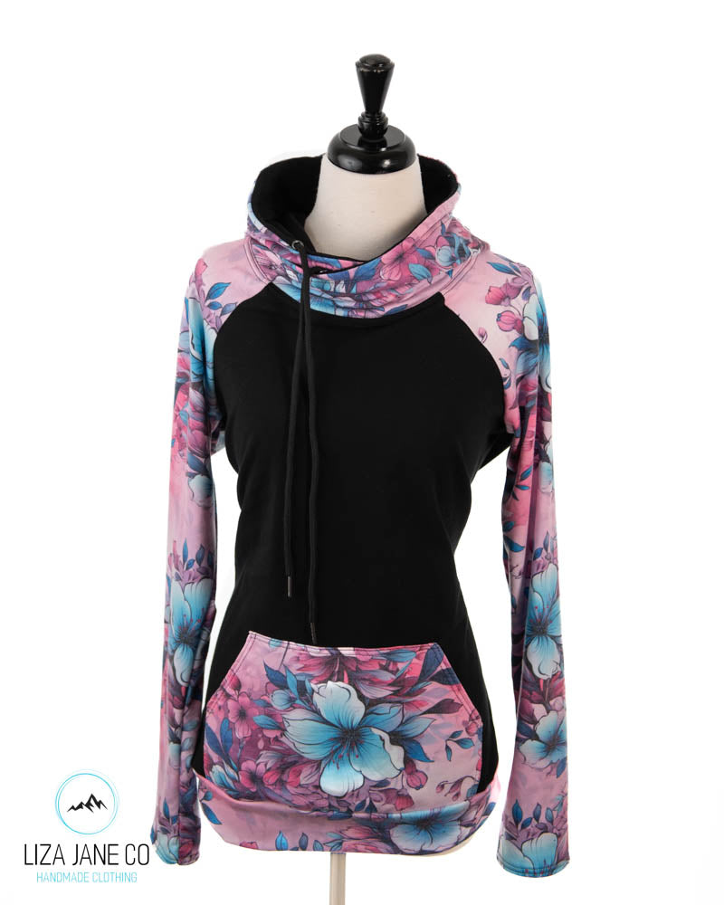 Women's Hoodie | Pink/Aqua Floral and black on Body {Made to Order}