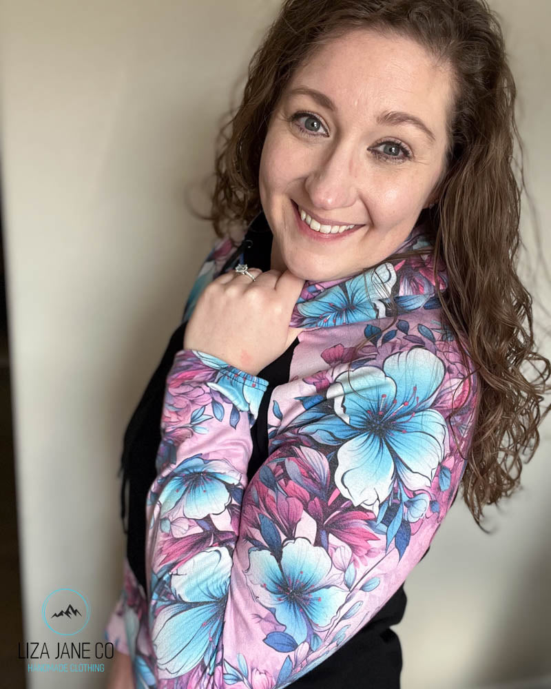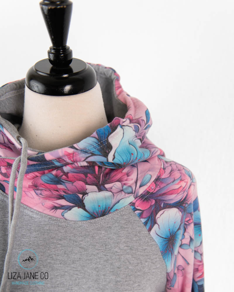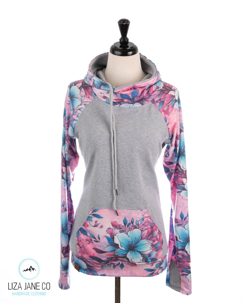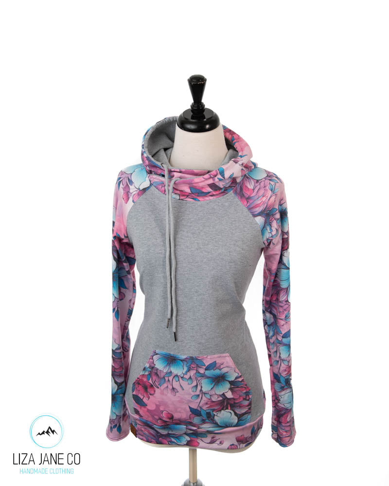 Women's Hoodie | Pink/Aqua Floral and Grey on Body {Made to Order}