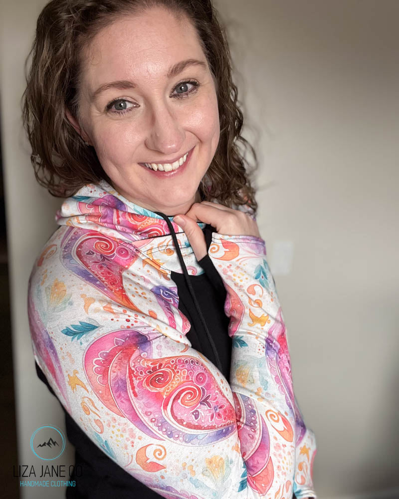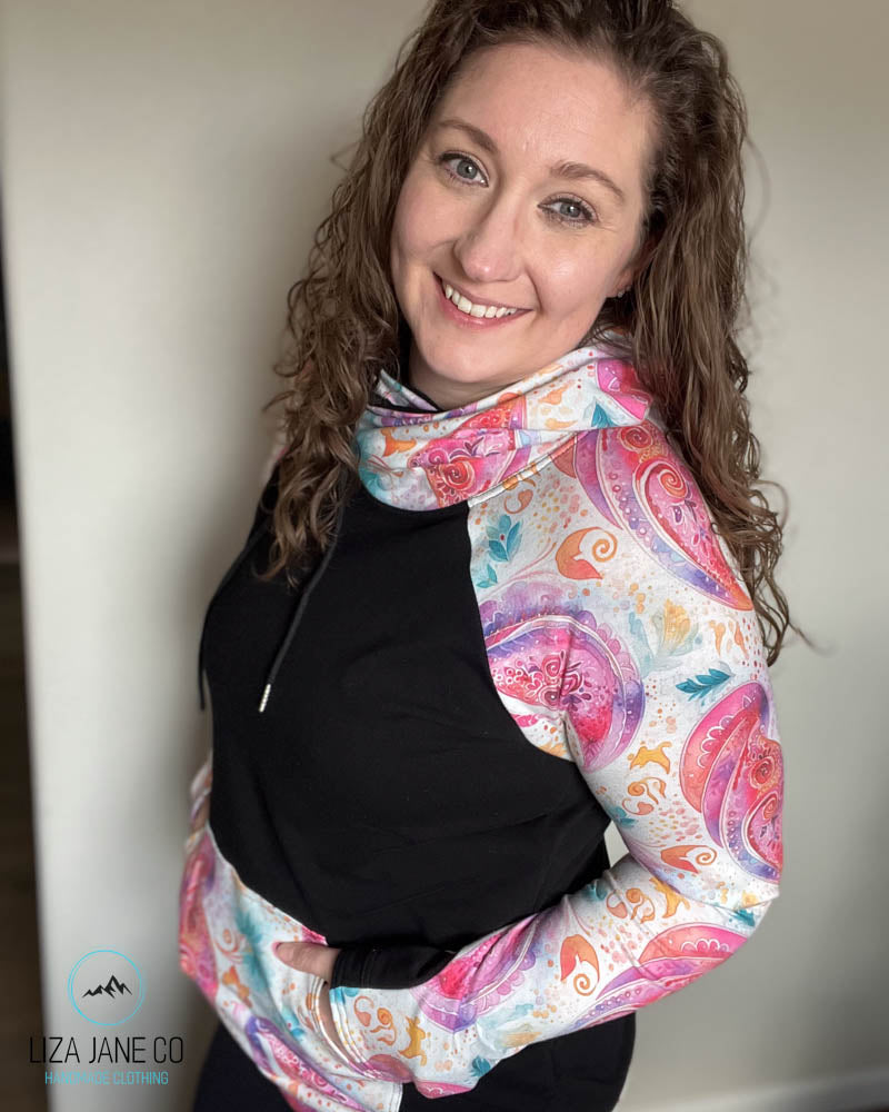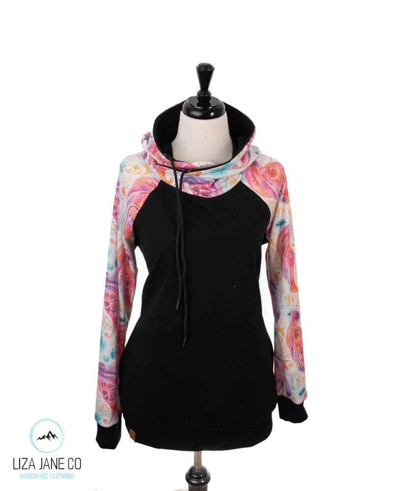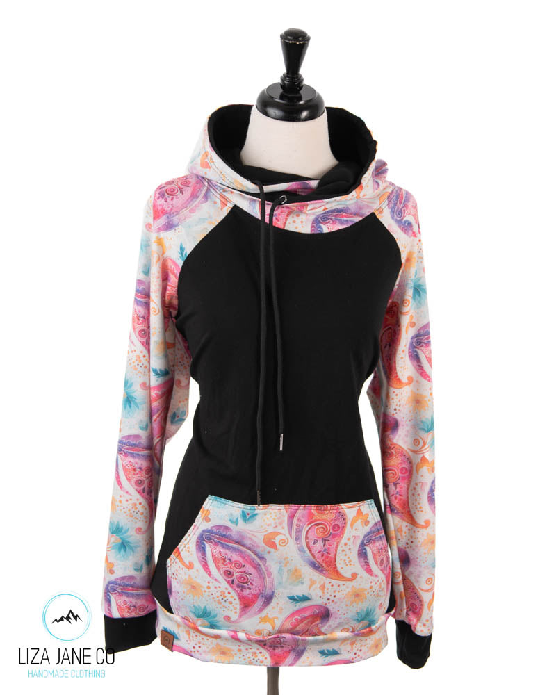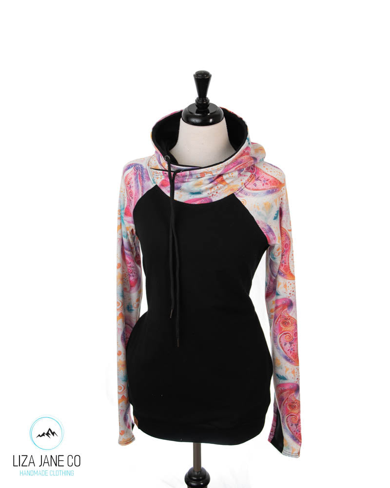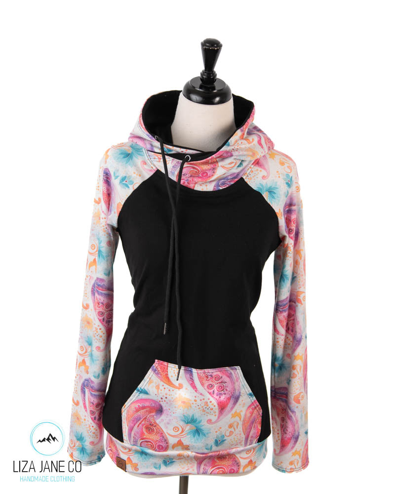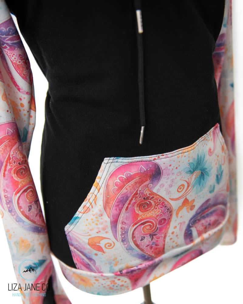 Women's Hoodie | Pink paisley on white and black on Body {Made to Order}