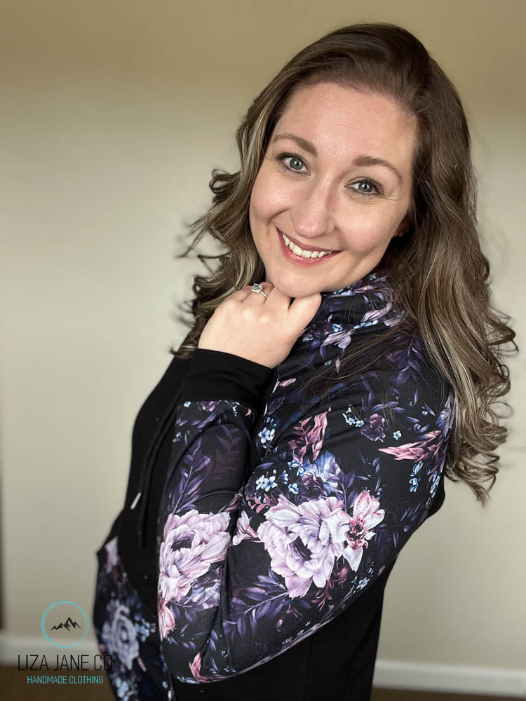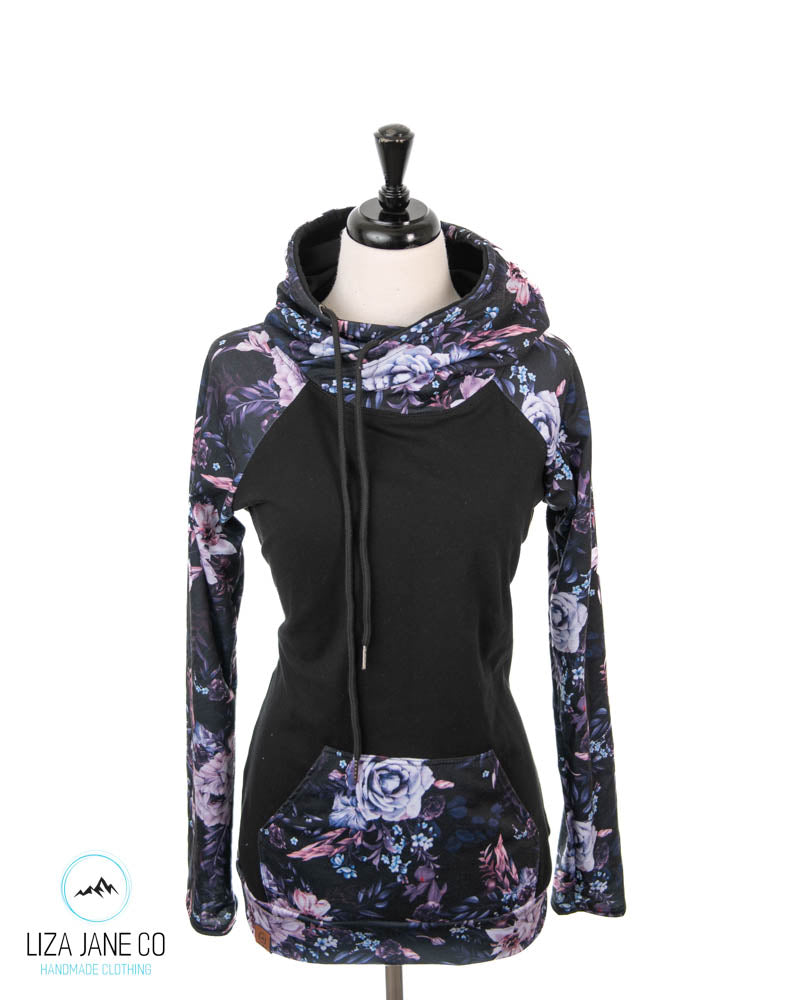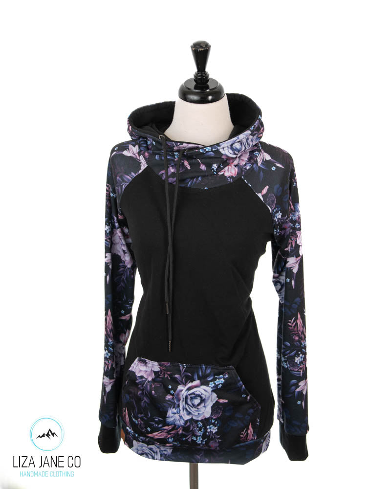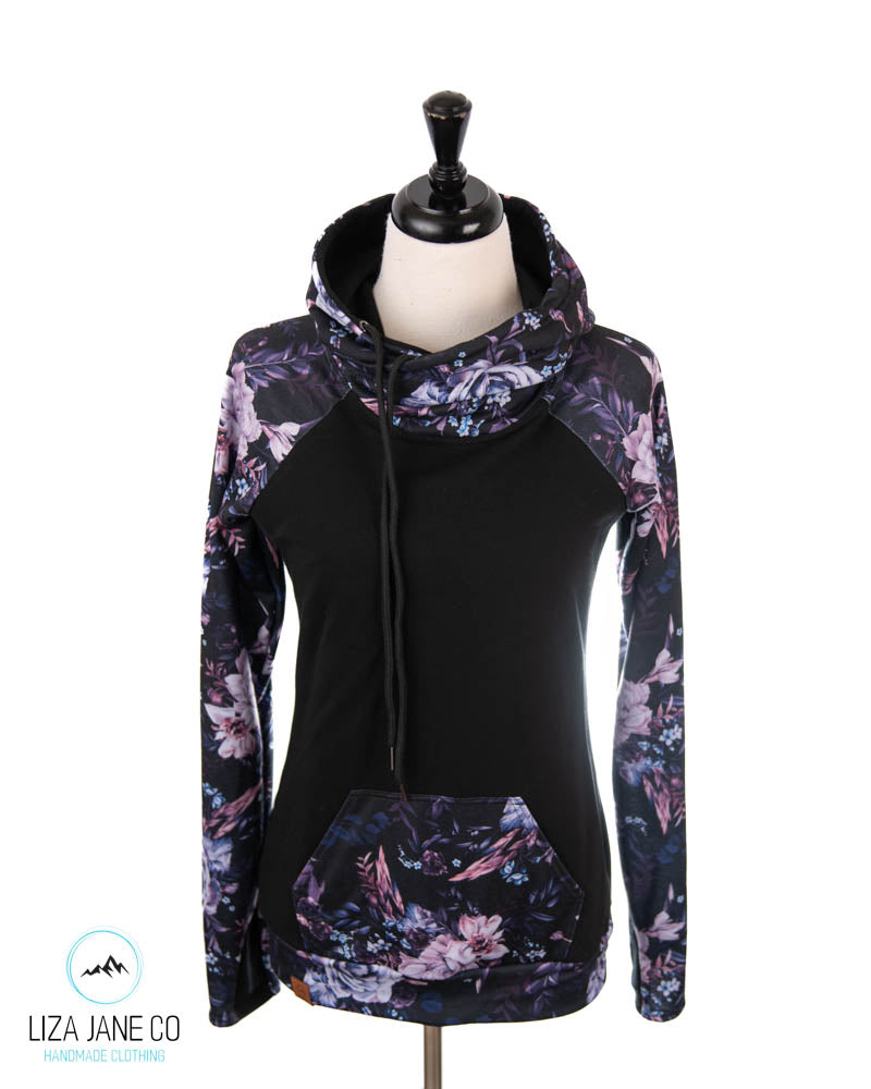 Women's Hoodie | Purple Floral on black and Black on Body {Made to Order}