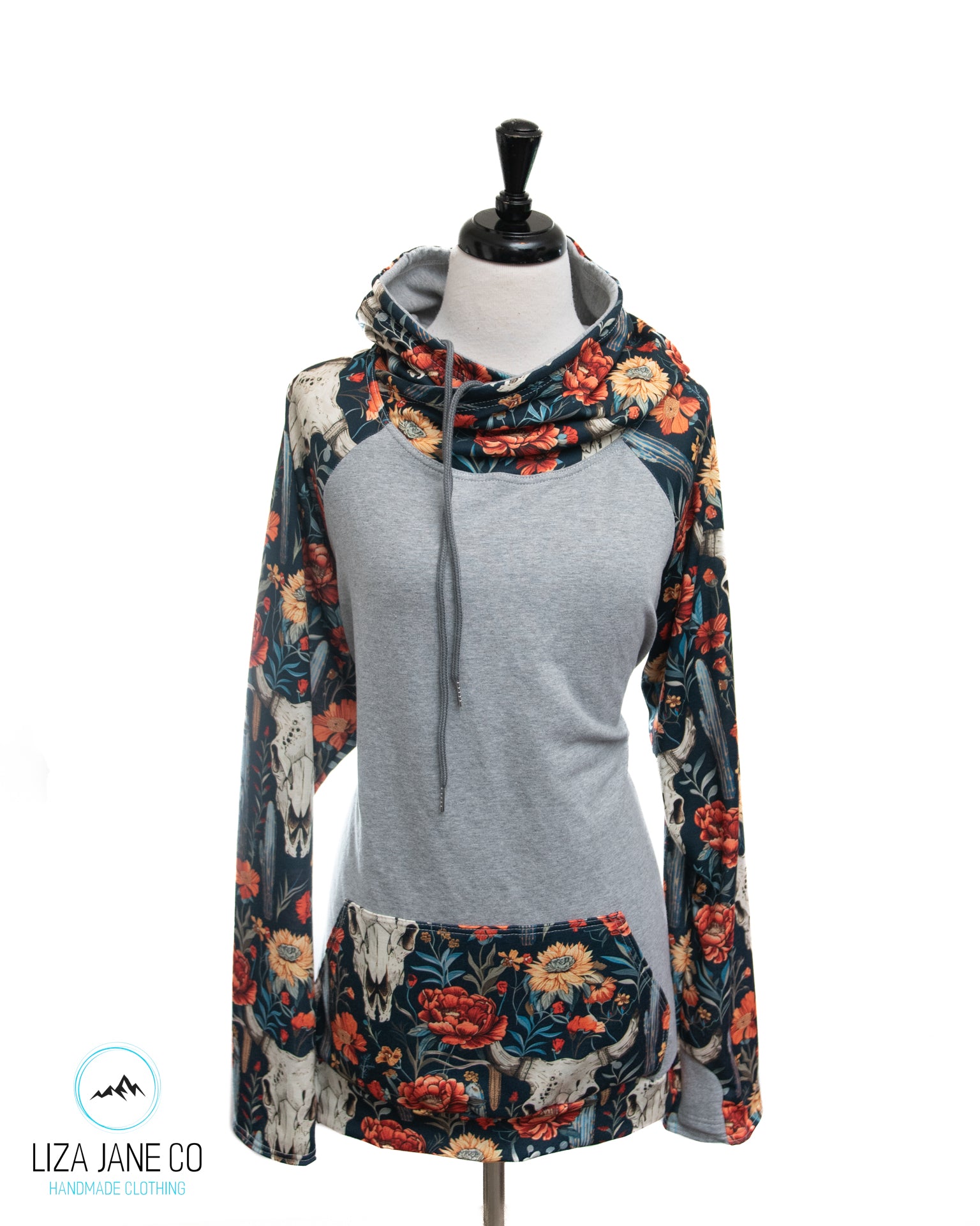 Women's Hoodie | Skulls & Fall Florals and grey on Body {Made to Order}