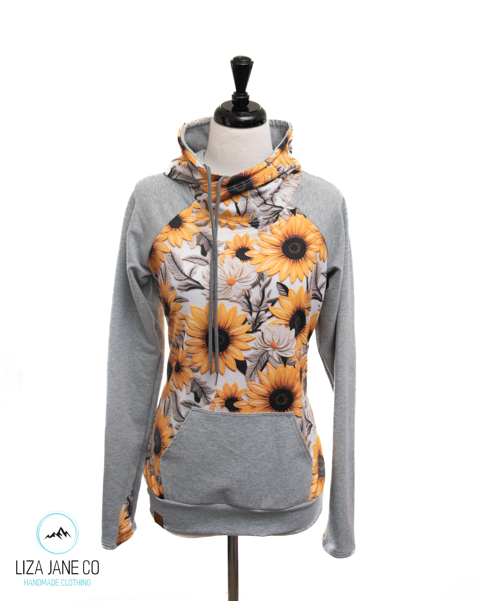 Women's Hoodie | Vibrant Embroidered Sunflower and Grey on Sleeves {Made to Order}