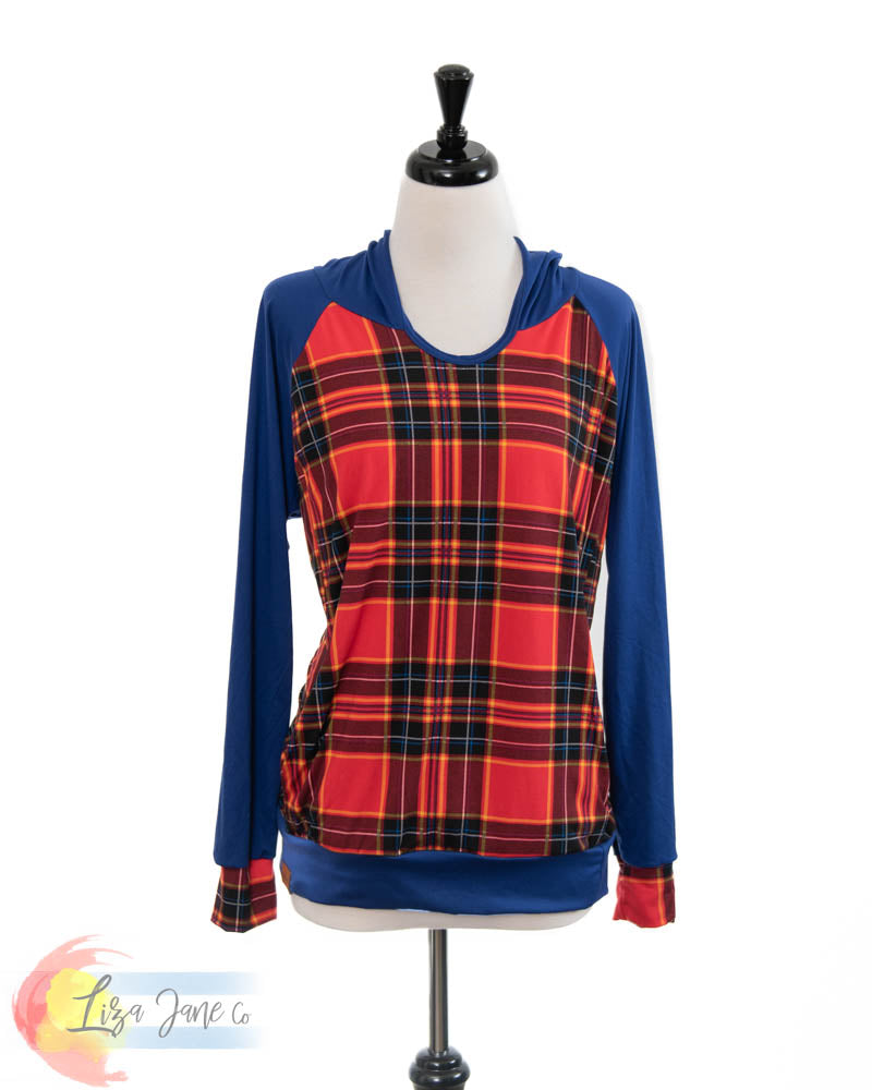 Women's Seaside Hoodie | Red and Royal Blue Plaid + Royal Blue {Large}