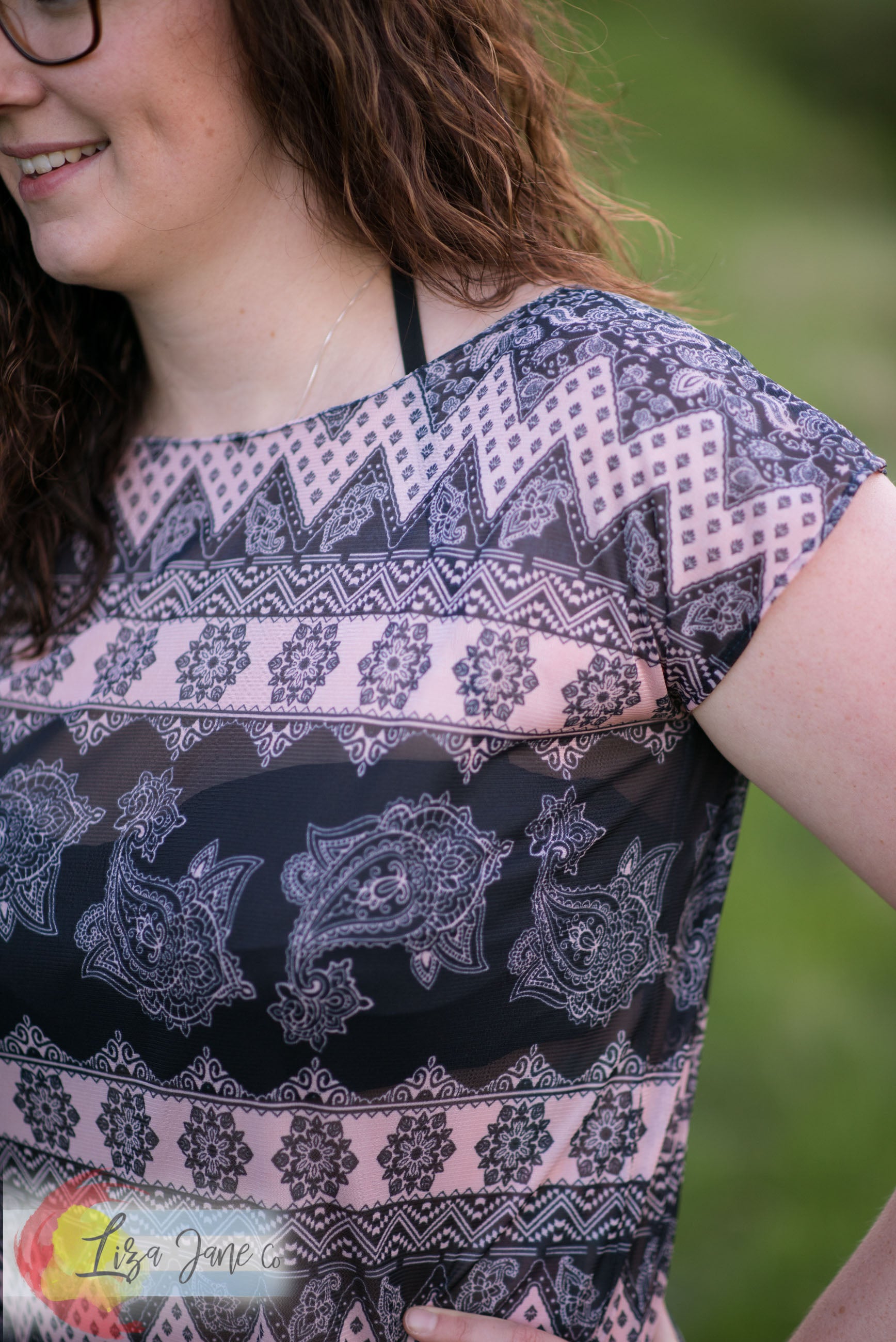 Women's Swimsuit Cover up | Pink and Blue Mesh Dress {Large}
