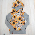 Zipper Nursing Hoodie | Embroidered Sunflowers and Grey on Sleeves {Made to Order}