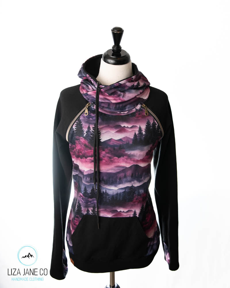 Zipper Nursing Hoodie | Purple Linen Mountains and black on Sleeves {Made to Order}